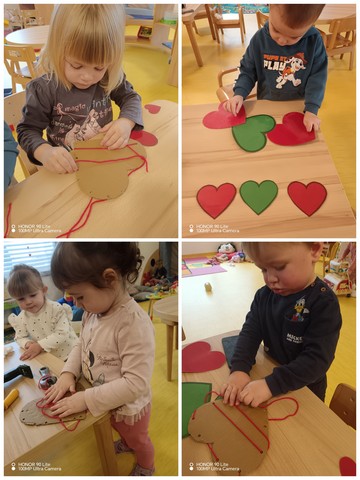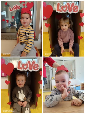 U skupini Pčelice sve je bilo u znaku ljubavi i srca te je vladala vesela i topla atmosfera. Razgovarajući s djecom saznali smo „Koga najviše vole?“. Najčešći odgovori bili su mama i tata te prijatelji iz skupine, a pitali smo se i što je to ljubav. Izradom stolno-manipulativnih igara djeca su vježbala finu motoriku, razvijala pozornost, strpljivost i pažnju. Veliki interes djeca pokazuju za likovne aktivnosti u kojima smo bojali srca temperama te modelirali plastelinom i tako poticali djecu na dijeljenje i međusobnu suradnju. Uz puno pjesme i plesa, Valentinovo smo obilježili na najljepši mogući način – zagrljajima i prijateljskim poljupcima.