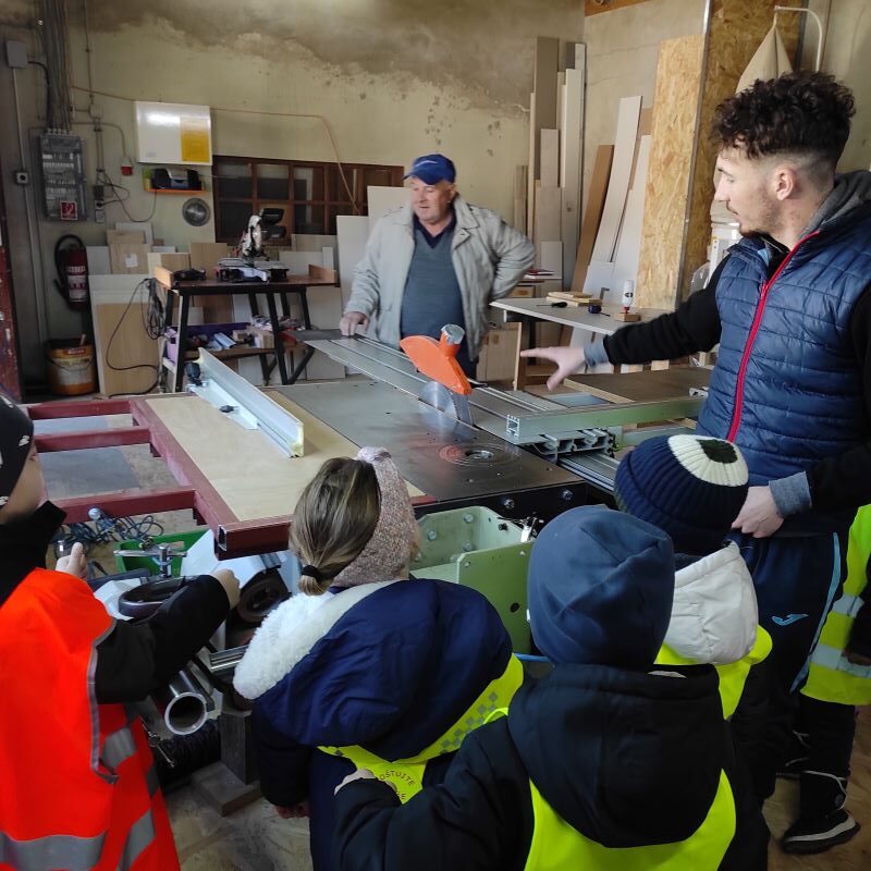 Ulaskom u radionicu, naša donedavna Iskrica, danas stolar Mislav u društvu oca upoznao nas je s alatom, strojevima, materijalima i namještajem u trenutnoj izradi. Nismo odoljeli iskušenju da i mi primimo poneki alat u ruke.