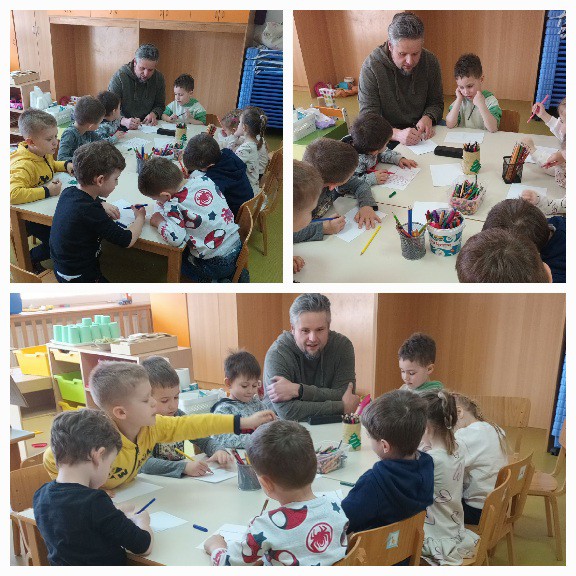 Djeca su se samim dolaskom u skupinu razveselila i zanimljivo pratila svaki pripremljeni dio aktivnosti koje je tata pokazivao. Puni ideja i mašte sami su se pokušali pokazati u svojim likovnim radom i izradom plana projekta za naš Legrad.
