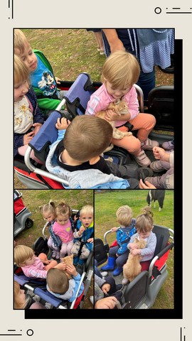 Tijekom naše jasličke šetnje minibusima doživjeli smo jedno lijepo iznenađenje. Slučajno smo naišli i upoznali ponija Valenta na seoskom imanju Švegović. Djeca su bila oduševljena iznenadnim susretom i s puno znatiželje promatrala ponija. Mnoga djeca odmah su počela postavljati pitanja, smijati se i dijeliti dojmove. Osim toga, imali smo priliku čuvati i maziti malu žutu macu koja je odmah osvojila dječja srca.