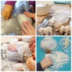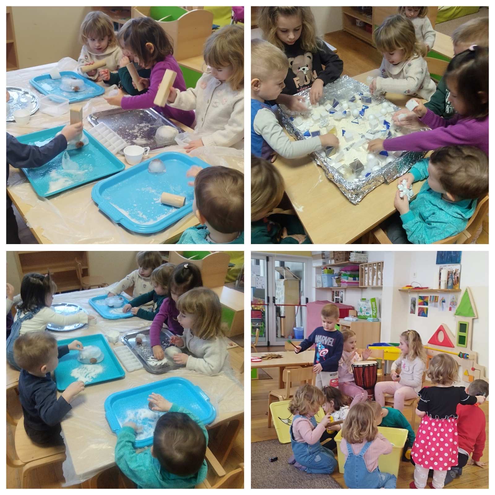 Djeca su također istraživala senzorne kutije ispunjene pahuljicama, pjenastim kuglicama i raznim kockicama na soli i brašnu. Dok su brojila do pet i slagala oblike, razvijala su finu motoriku, prostornu percepciju i  usvajala matematičke pojmove, a kroz zajedničko slaganje i manipulaciju materijalima uče dijeliti prostor i surađivati. Aktivnost se dodatno obogatila igrom Memory s polarnim životinjama, koja potiče pamćenje, koncentraciju i suradnju među djecom.