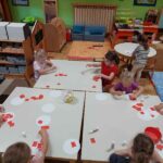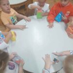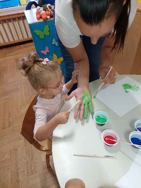 Dani adaptacije prolaze prema planu i bez teškoća te se posvećujemo uobičajenim temama vodeći računa o važnim datumima kako bi od malih nogu razvijali zdrav način života. Stoga smo obilježili Međunarodni olimpijski dan različitim sportskim aktivnostima na otvorenom. Raznim pričama o lopti nastojali smo djeci pobuditi interes za igrom te dijeljenje same igračke. Likovne aktivnosti su neizbježne u našoj skupini stoga smo bili vrlo likovno kreativni i maštoviti.