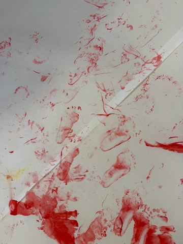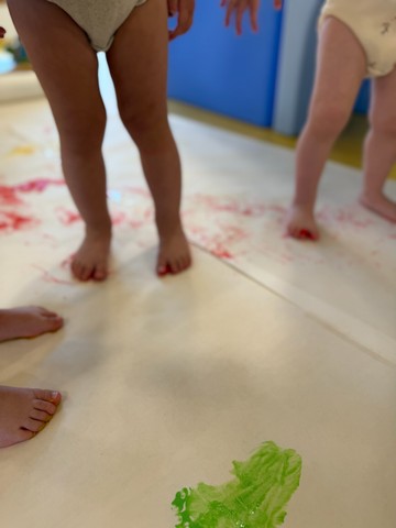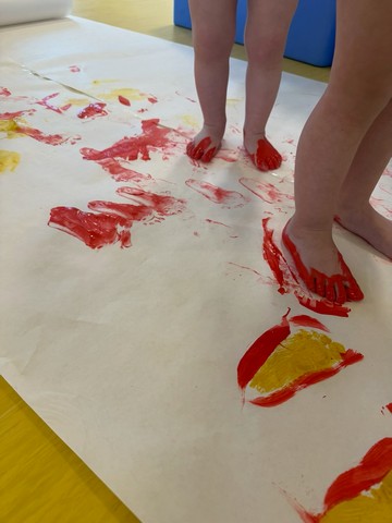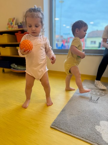 Likovno izražavanje podigli smo na novu razinu – osim rukama, slikamo i stopalima (umjetnost ne poznaje granice!). Motori su u punom pogonu, a koordinacija i ravnoteža svakim su danom sve sigurnije.