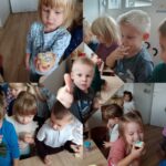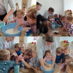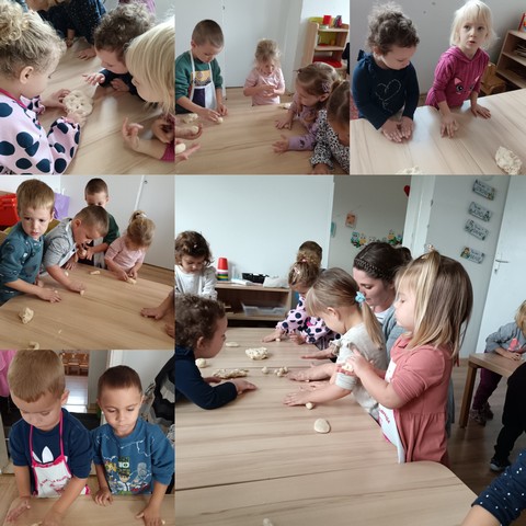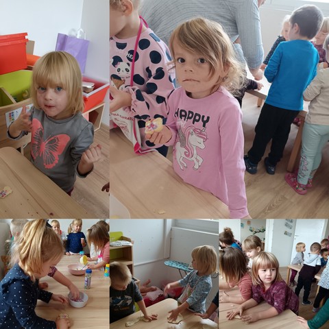 Dana 15.10.2025. u našim smo skupinama ugostili slastičarku, mamu Katarinu i s njom proveli slatku radionicu izrade tijesta i kolačića. Djeca su pomno poslušala što sve u tijesto treba staviti, pomogla dodati sastojke i gledala kako slastičarka mijesi tijesto. Potom su se i sami okušali u oblikovanju tijesta. Manipulacija tijestom odličan je stimulans za razvoj taktilne percepcije i fine motorike te također umiruje dijete.