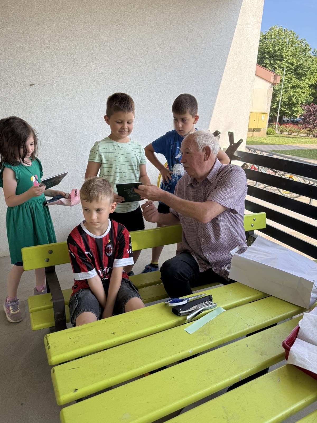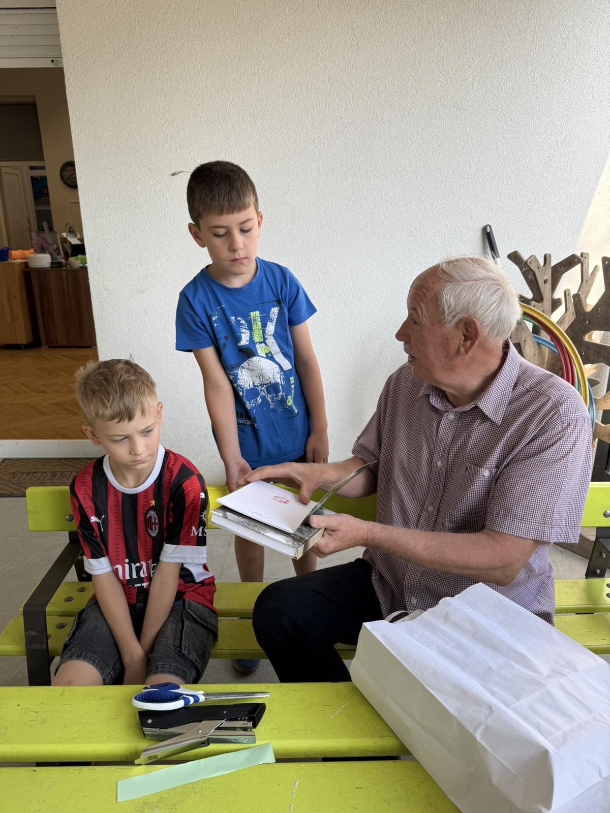 Vrhunac tjedna bio je poseban posjet gospodina Mladena Večenaja, poznatog pjesnika, koji je došao nagraditi naše male recitatore. Djeca su s puno ponosa izvela stihove njegovih pjesama, pokazujući razvijenu izražajnost, samopouzdanje i ljubav prema jeziku. Gospodin Večenaj prenio im je dio lokalne tradicije kroz razgovor i anegdote, a djecu je prigodno darovao knjigama, ilustracijama i simboličnim poklonima kako bi im ostao trajan podsjetnik na ovaj poseban dan.