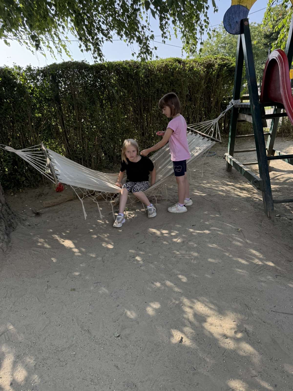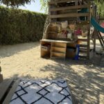 Posebno mjesto zauzima naš novouređeni centar za opuštanje koji uključuje njihaljke, šator, klupe od paleta i meke tepihe. Ovo je prostor u kojem djeca mogu pronaći mir, povući se, čitati slikovnice ili se jednostavno ljuljati i promatrati prirodu – pružajući tako dragocjene trenutke odmora i emocionalne regulacije.