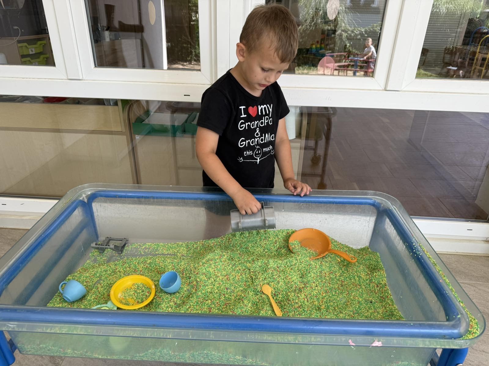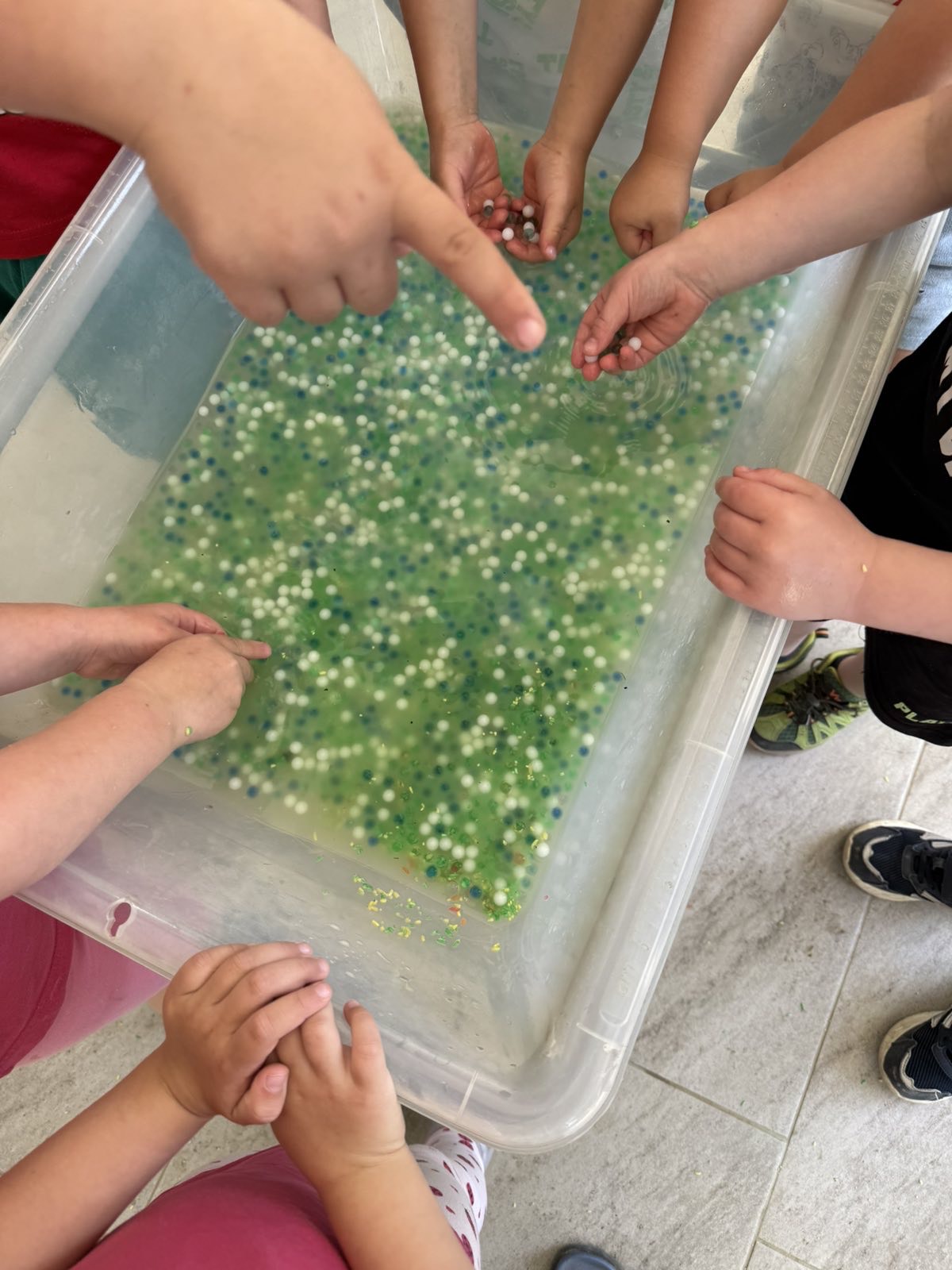 Dodali smo i senzorni kutak na otvorenom, bogat raznolikim teksturama poput riže, vodenih kuglica i raznih materijala. Takve aktivnosti potiču razvoj osjetila, koncentracije, finih motoričkih vještina te pružaju djeci mogućnost istraživanja kroz igru i dodir.